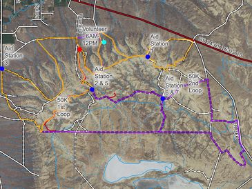 Aid Stations - there will be 2 for the 6 Milers, 3 for the 16 Milers, and 7 for the 50Kers. All will include water, Skratch hydration drink, and snacks. All aid stations will be CUPLESS. Please bring your own bottle, cup, or pack. 16 Milers and 50Kers will be required to carry at least a bottle.